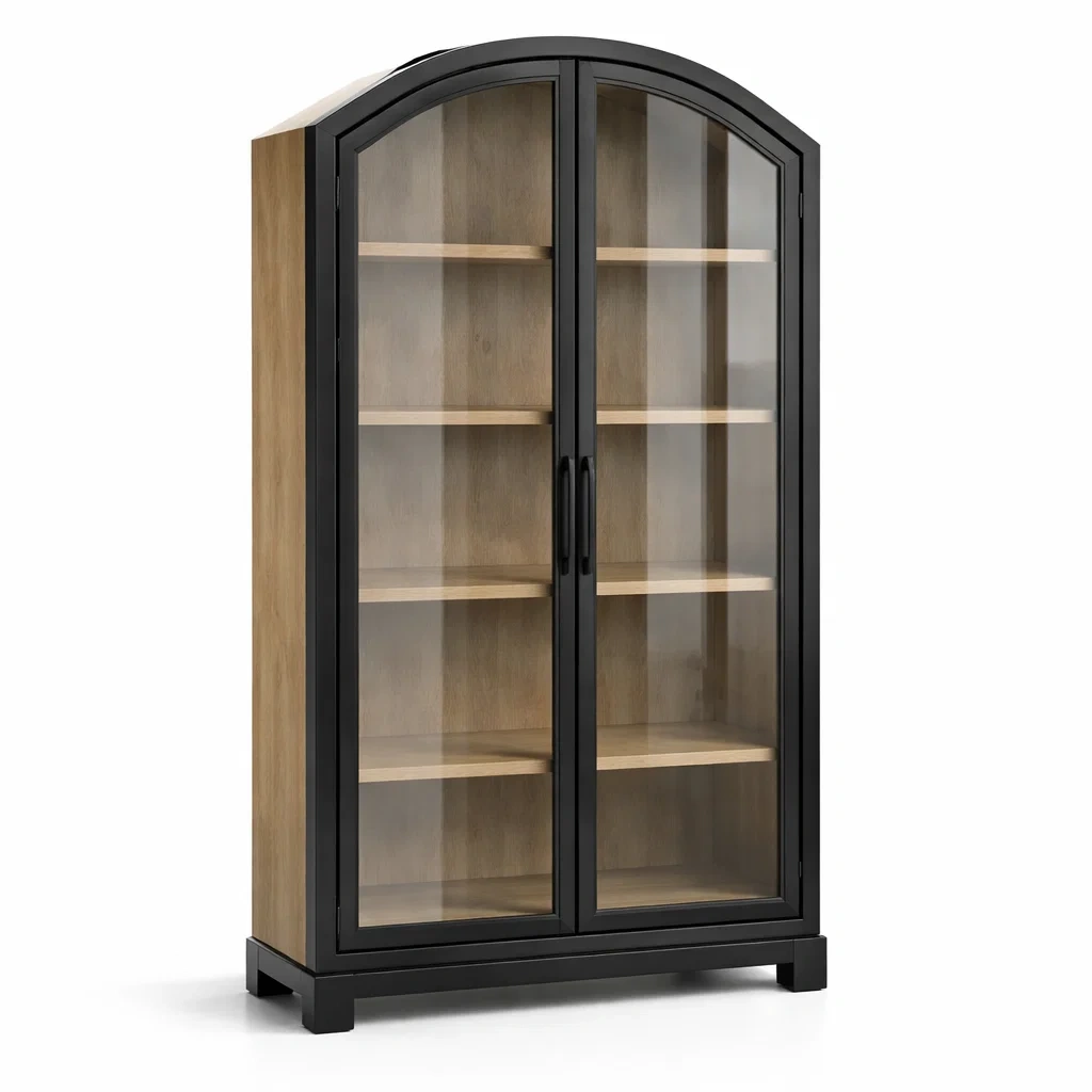 Vitrine en bois et métal noir avec portes en verre 180x90x40 cm